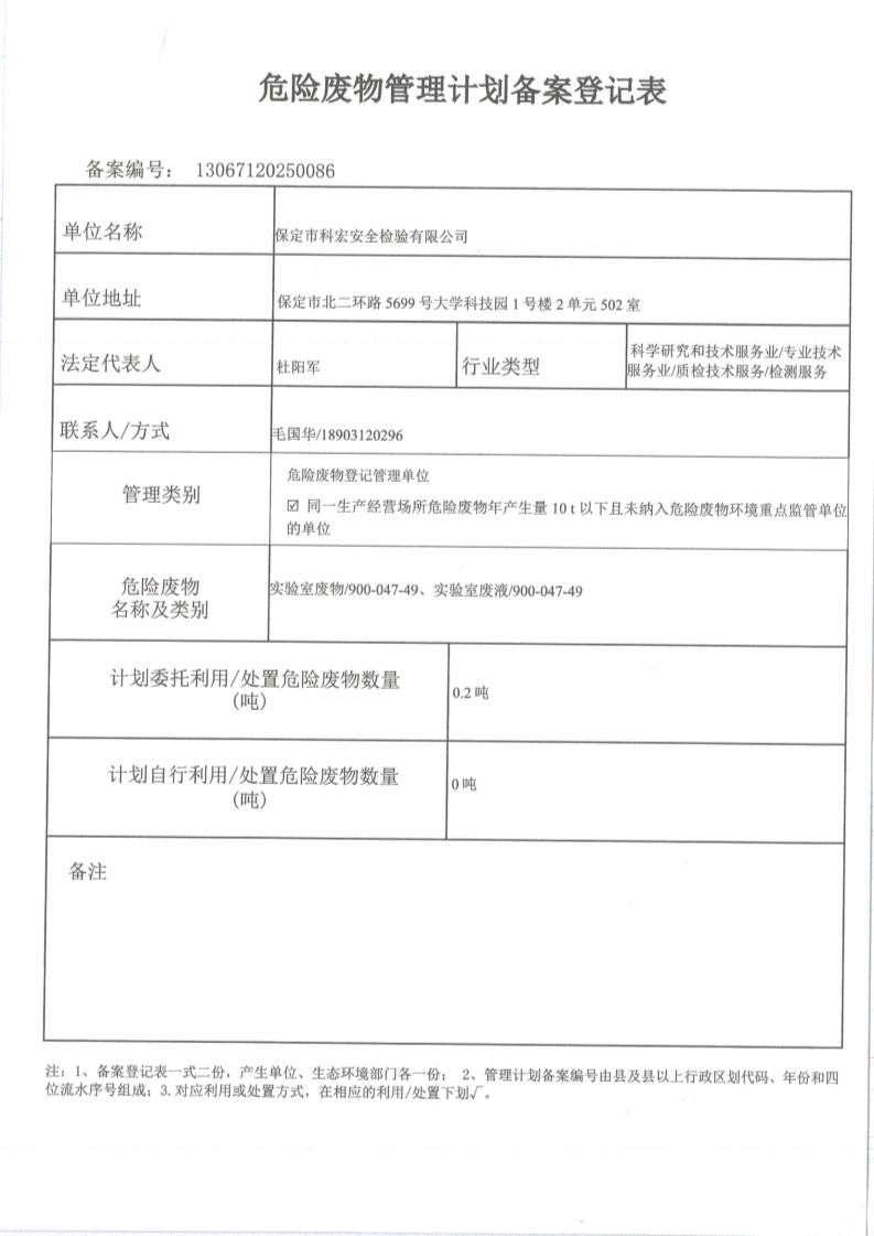 上一篇:2024年度危险废物管理计划备案登记表 下一篇:2025年度危险废物污染环境防治主体责任承诺书